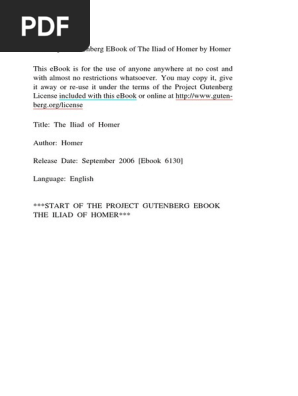 This PDF was scanned from the first. Browse the expansive library on Google Play anywhere anytime. The Iliad is a beautiful novel written by the famous author Homer.